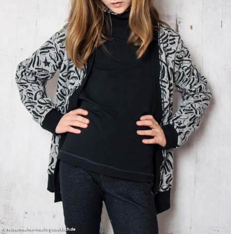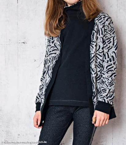 Stoffempfehlung für diesen Style: Jerseystoffe oder Sweatshirtstoffe. Fleece ist auch möglich.