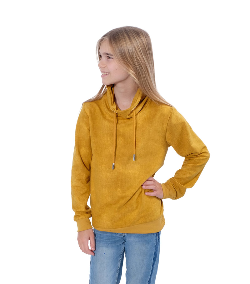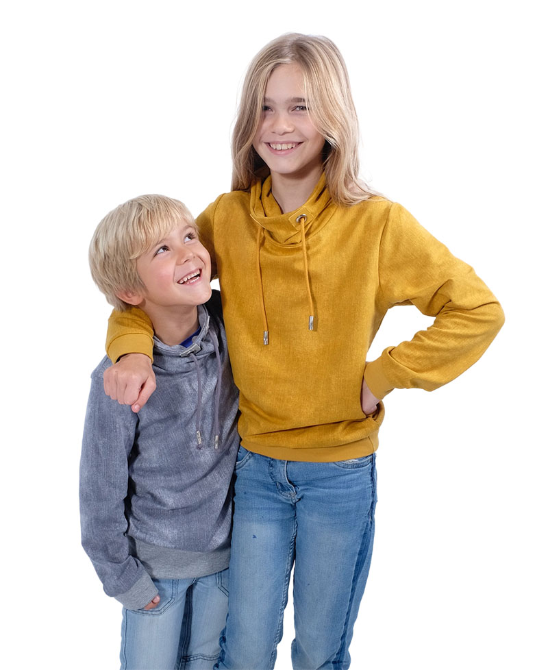 Eine wunderschöne “Sommersweat” Sweatshirt Qualität mit gebatikter Optik. Ideal für Mützen, Schals, Oberteile, Jacken, Kleider, Röcke und vieles mehr. Die Rückseite ist nicht angeraut sondern weist die typische Schlingenstruktur auf. Abbildung Schnittmuster Kindershirt Bobby in anderer Farbstellung zur Inspiration.