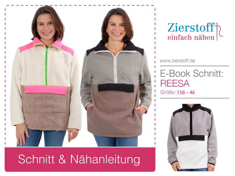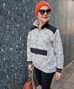 Dieser Troyer Pullover / das Overshirt ist ein toller Begleiter durch das ganze Jahr. Der Pullover mit Reißverschluss wird je nach Stoff immer wieder einen anderen Look haben. Der Reißverschluss kann optional mit einem Band verarbeitet werden. Das elastische Einfassband für den Reißverschluss bekommt ihr hier. Dieses Schnittmuster ist nur für Fortgeschrittene Näherinnen zu empfehlen. Wer möchte kann sich das Vorderteil auch entsprechend länger zuschneiden und mit einem RV zur Jacke verarbeiten. Im Schnittmuster ist die Jacke nicht beinhaltet, nur beschrieben. Den Abschluss an dem Pullover könnt Ihr wie immer kreativ abwandeln, siehe hier das Beispiel am Ende mit Bündchen und Kordel, so habt Ihr viele Möglichkeiten kreativ zu werden!