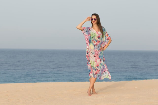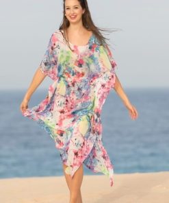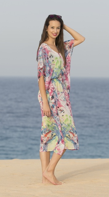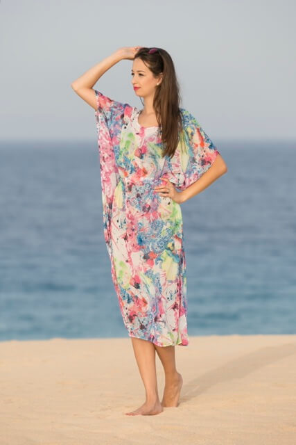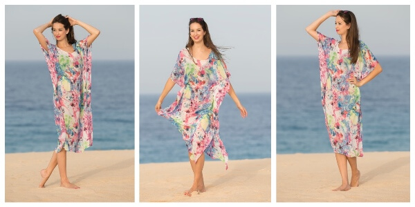 Diese Tunika ist einfach genäht und sollte in keinem Urlaubskoffer fehlen… Du kannst die Tunika aus allen dünnen und weich fallenden Stoffen nähen. Wir empfehlen dafür alle Chiffonstoffe, Meshprints und leichte Viskosejerseys.