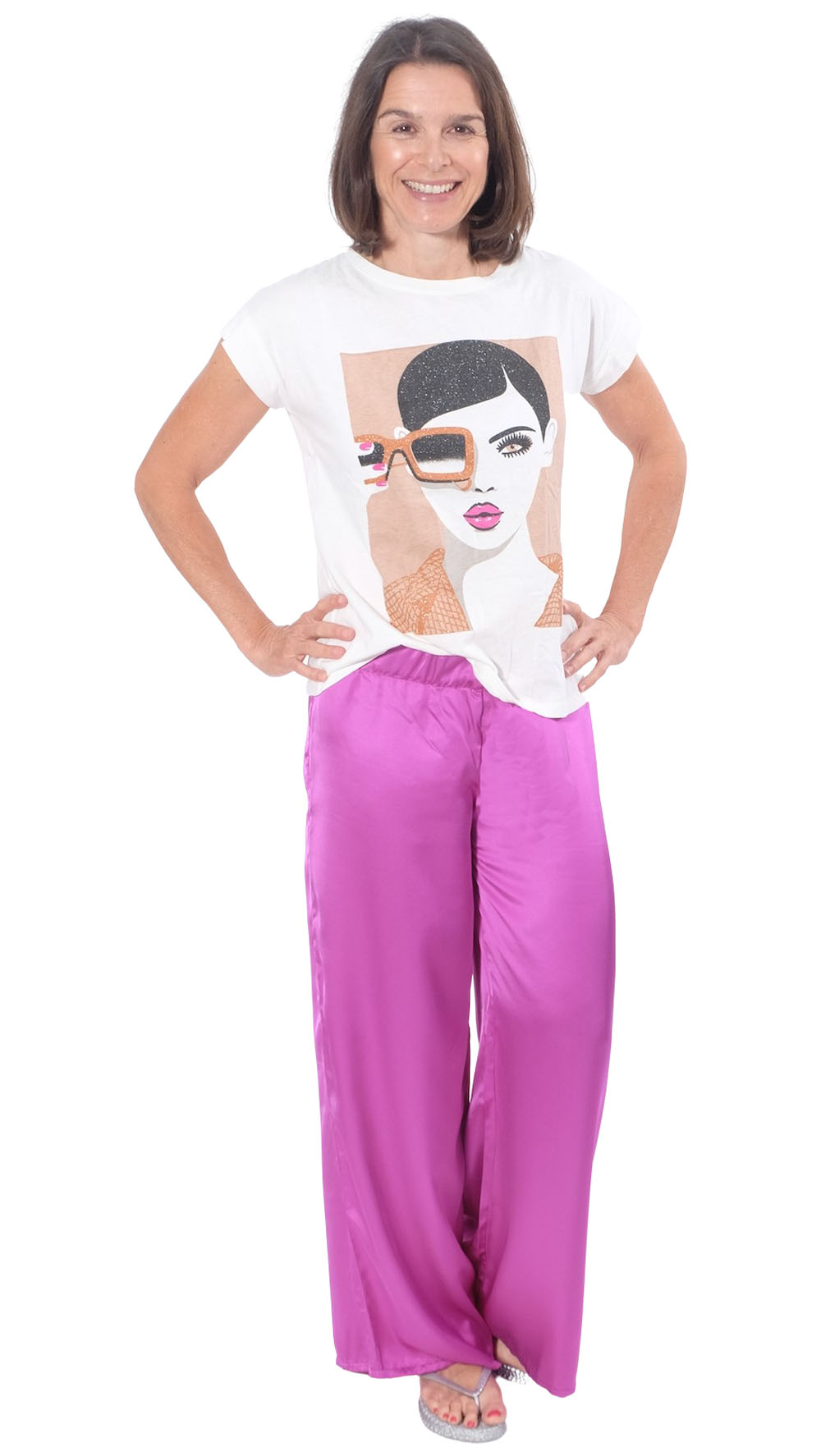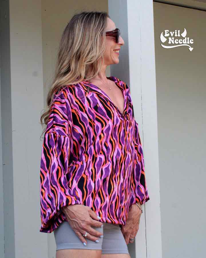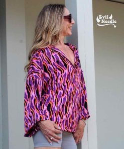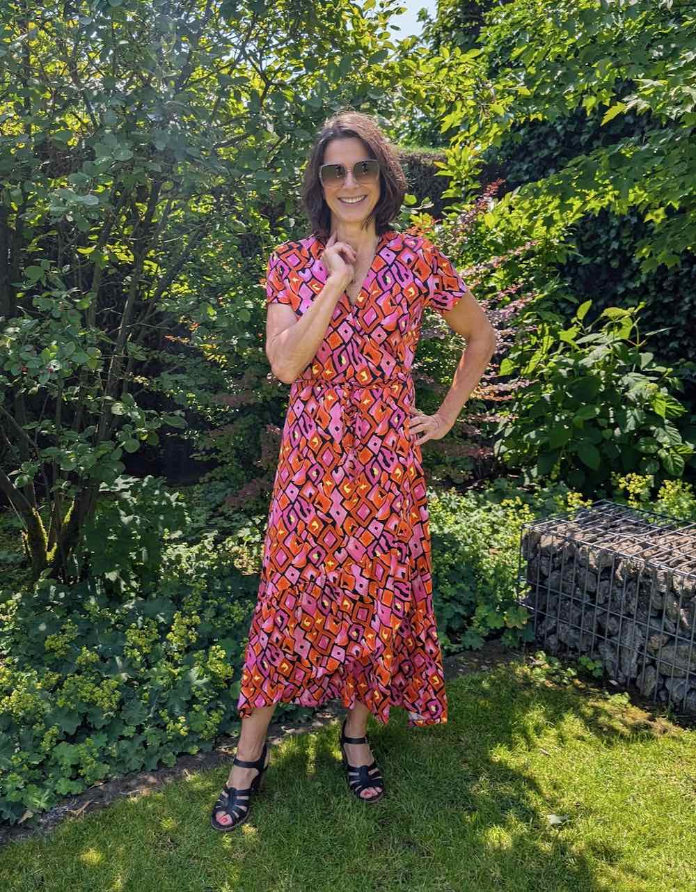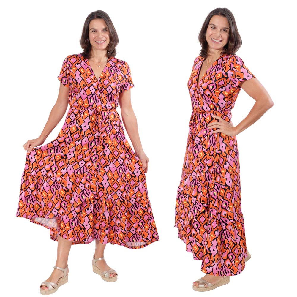Dieser hochwertige Satinstoff bedruckt eignet sich super für Blusen, Hosen, Kleider und vieles mehr. Abbildung Schnittmuster Kleid Marianne und Bluse Nilam in Original. Abbildung Wickelkleid Safia. Rock Wanja, Yara aus gleicher Qualität aber anderer Musterung, ebenfalls Hose Fatima.
