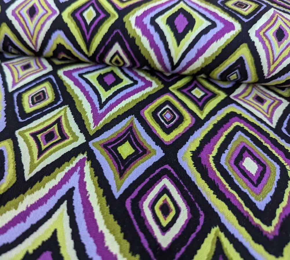 Material: 98% Viskose / 2% Elasthan. Der Artikel ist leicht elastisch. Durch den Digitaldruck kommen die Farben besonders gut zur Geltung.