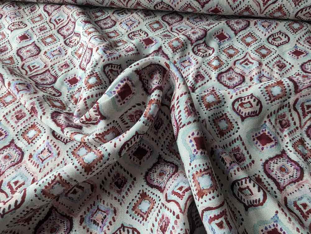 Material: 100% Viskose. Dieser Viskosestoff ist durch die Webart leicht dehnbar, ist leicht fallend und hat eine tolle Haptik.