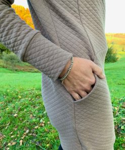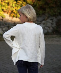 Ein aktuell angesagter, dehnbarer “Waffelstoff”. Er liegt wunderbar auf der Haut und ist kuschelig zu tragen. Du kannst ihn für Pullover, Kleider, Röcke und Sweatshirts verwenden. Abbildung Schnittmuster Jacke Natia, Kleid Marika, Agneta, Sweatshirt Maren, Jacke Xaver in Hellgrau, Heaven und Kleid Amanda in Blau /Ecru und Shirt Famke oder Minna.
