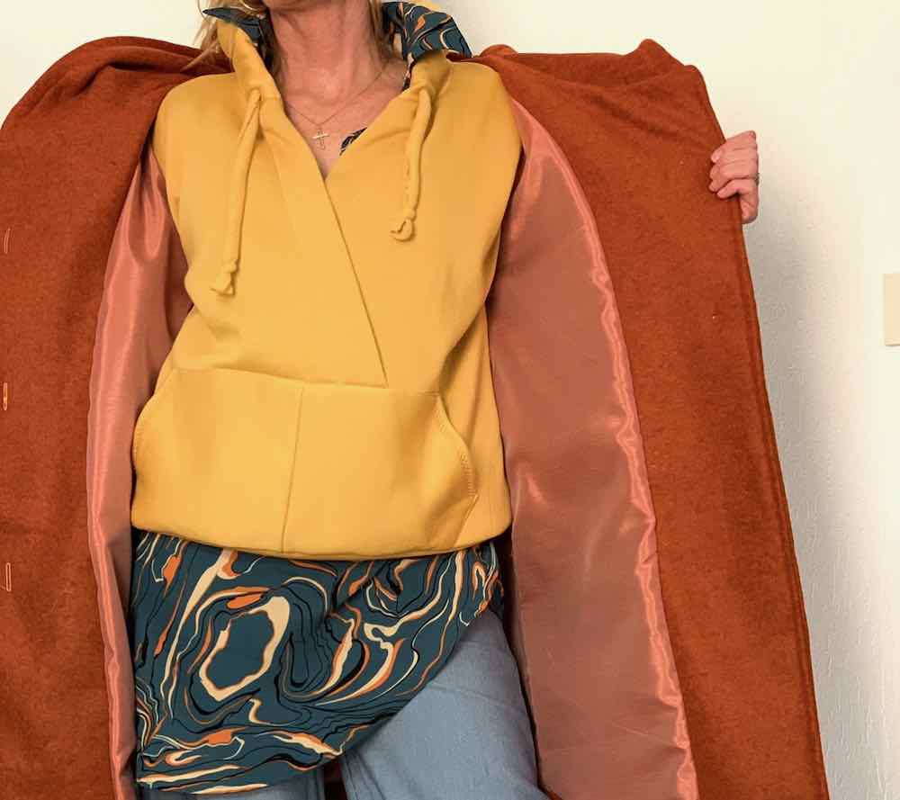 Eine wunderschöne Wollqualität. Ein hochwertiger Wollstoff, ideal für Mäntel und Jacken. Der Artikel ist dehnbar. Wer sehr empfindlich ist, sollte die Qualität abfüttern. Abbildung Schnittmuster Damenjacke Christin und Weste Thurid.