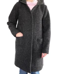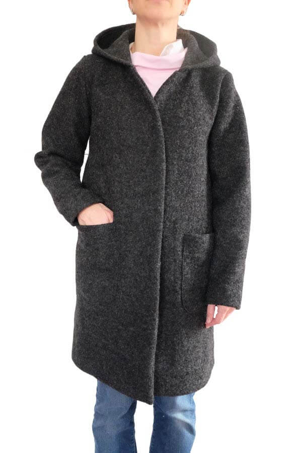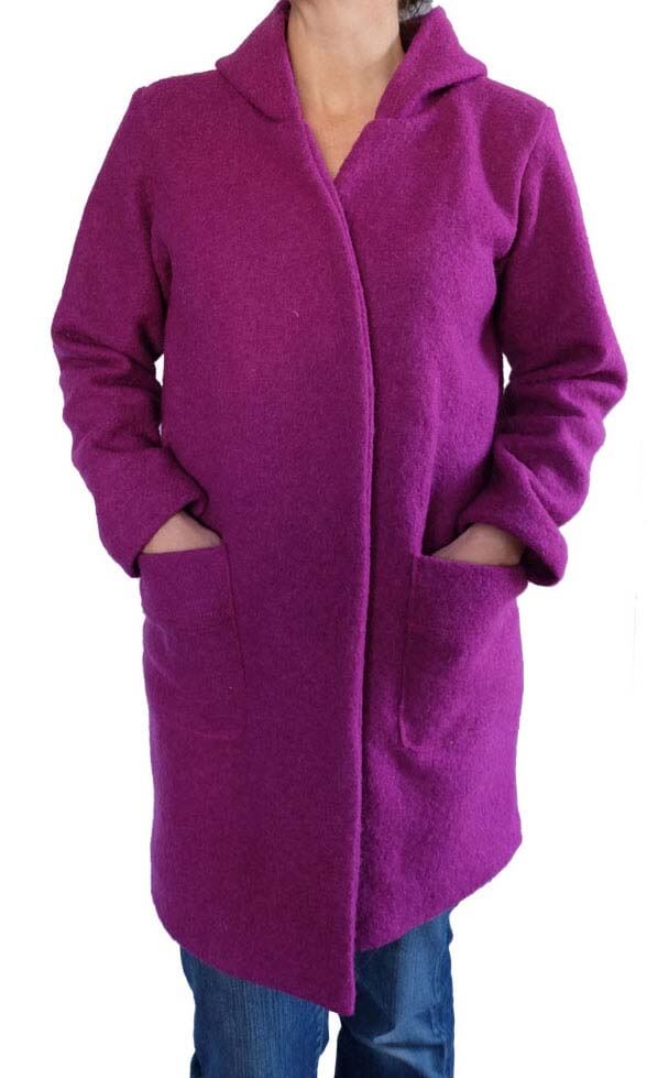 Eine wunderschöne Wollqualität. Ein hochwertiger Wollstoff, ideal für Mäntel und Jacken. Der Artikel ist dehnbar. Wer sehr empfindlich ist, sollte die Qualität abfüttern. Abbildung Schnittmuster Hoodie Jade in Originalware. Kinderweste Lasse. Damenjacke Lulika in Fuchsia und Anthrazit.Kinderhose Poldi in Grau und Hellgrau.