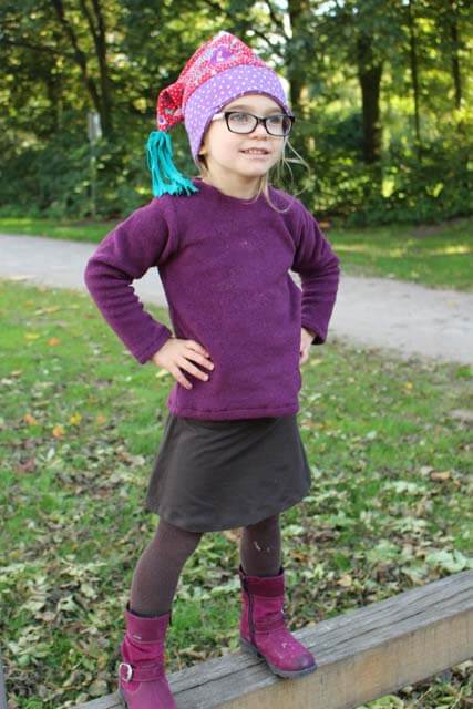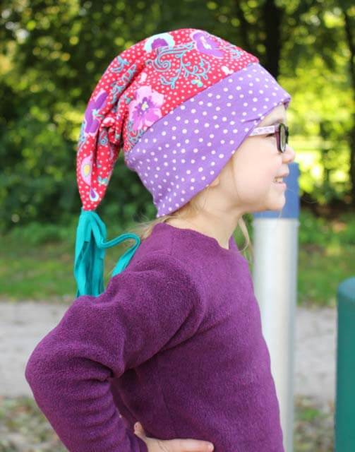- einen Schnitt für eine Zipfelmütze und ein Schnitt für eine runde Version der Mütze.