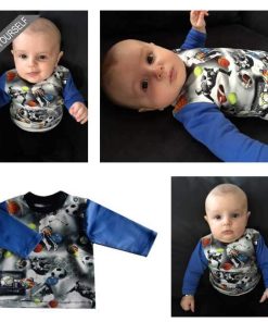 Ein super einfach genähtes Shirt mit Druckknöpfen, hier gibt es kein Gejammer beim Anziehen..))) Das T-Shirt kann das ganze Jahr über genäht werden, im Sommer kannst Du die Ärmel ja ganz einfach kürzen. Das Teil ist einfach schnell genäht und schaut angezogen zuckersüß aus. Ein passendes Video gibt es natürlich auch dazu, somit ist es ein wunderbares Anfängerprojekt. Als Kombination ist hier die Hose Maxi und die Hose Lou abgebildet. Den Stoff mit den Sportmotiven findet ihr HIER und den Stoff mit den Waldtieren im Comicstyle HIER.