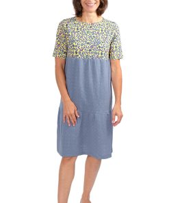 Hochwertiger Baumwollstoff mit Lochstickerei. Ideal für Kleider, Blusen, Röcke und vieles mehr. Abbildung Schnittmuster Rock Heidi in Farbe Senf und Kleid Hera in Jeansblau. Mit dem Stoff kann man auch das Schnittmuster Francesca verarbeiten, entweder ganz aus Stoff oder nur einzelne Bahnen.