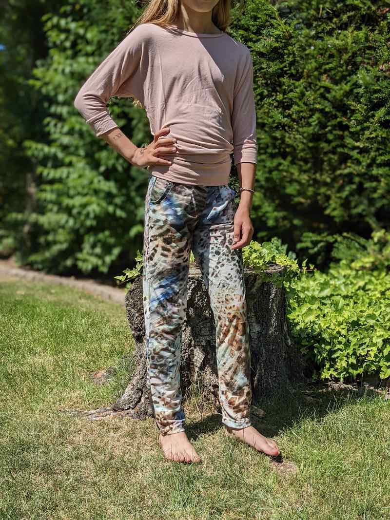 Stoffempfehlung: Fließende Stoffe, elastisch oder unelastisch. Viskosestoffe oder Jerseys eignen sich für diese Hose. Je besser der Stoff fällt, desto schöner sieht die Hose am Ende aus. Stabile Baumwollstoffe sind nicht zu empfehlen.