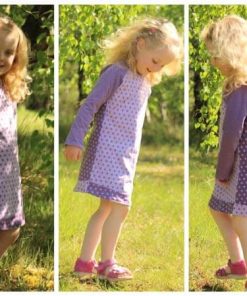 Dieses Kleid ist sehr schnell genäht und ein ideales Projekt wenn man schon das ein oder andere Jerseyteil genäht hat. Ihr könnt es mit Streifen, angesetztem Rock, gerade oder auch als Shirt nähen. Die Möglichkeiten sind vielfältig. Wir beschreiben im Ebook alle Möglichkeiten. Das Teil ist das ganze Jahr über tragbar!